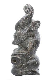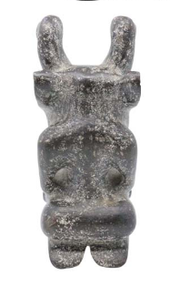 红山文化作为中国北方新石器时期最具代表性的文化遗存,其玉器体系被视作中华文明的重要源头之一。先民以玉为 “通灵媒介”,将对太阳的敬畏具象为神人像 —— 此件玉人头顶双角、半蹲坐姿、双手扶圆柱形物体的造型,大概率是部落巫觋沟通天地的仪式装扮,两端打孔设计则印证其曾作为祭祀礼器悬挂供奉,承载着早期先民的宇宙观与宗教信仰。这类遗存不仅展现了红山人的聪明才智,更填补了史前精神文化研究的实物空白。