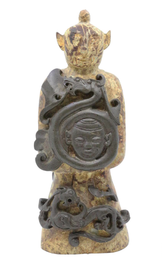 - 2019 年北京翰海秋拍「古代玉器專場」:一件漢代和田白玉舞人(無鎏金),高約 8 厘米,成交價人民幣 420 萬元;