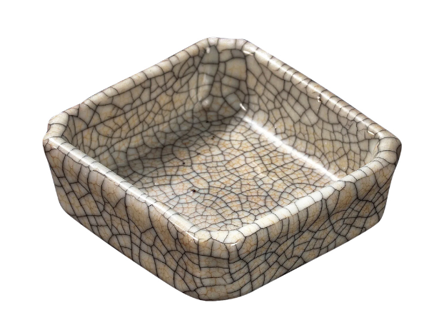 – 造型與製作:四方造型規整對稱,線條轉折流暢。四方器燒制難度高於圓形器,需精准控溫與胎體收縮率防變形,此洗製作規整,足見工匠技藝高超,是哥釉造型與工藝結合的代表。