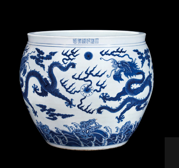 - 2018年某國際拍賣行秋拍:明代永樂青花海水雲龍紋缸以約2.3億港元成交;