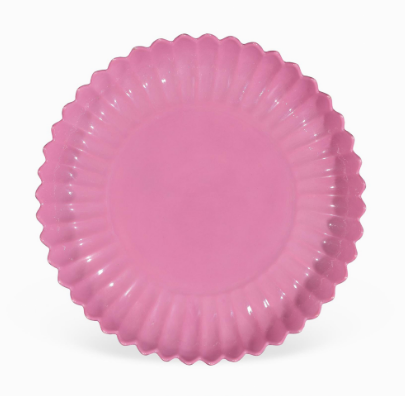 此盘工藝可謂「一寸瓷土一寸金」:盤壁尖瓣需分段修胎拼接,每片花瓣大小均勻、弧度流暢,對胎體薄厚把控近乎苛刻;淡粉釉色層次柔和,需經三次以上施釉與精准控溫,方能呈現「如脂似玉」的瑩潤質感。歷經近三百年風霜,釉面依舊光潔如新,花瓣棱線清晰銳利,足見當時御窑工匠的登峰造極之技。