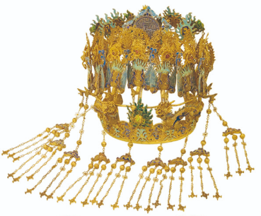 核心亮點:✅明清皇室專用鳳冠 | ✅二龍九鳳典制造型 | ✅金累絲點翠工藝巔峰 | ✅配套8件皇室金器組合