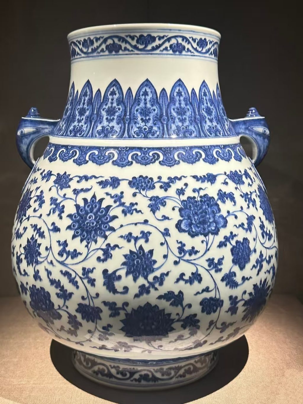 | 紋飾工藝 | 釉下青花;腹部纏枝花卉,口沿錦紋、頸部蕉葉紋、肩部如意雲頭紋、底部蓮瓣紋、圈足卷草紋 |
