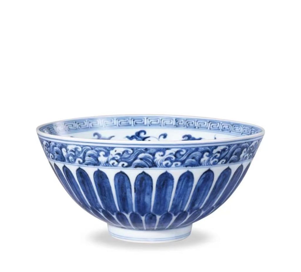 - 吉祥紋飾:外壁海浪纹磅礴,雙層蓮瓣纹清雅;内壁回纹邊饰精巧,六朵纏枝花卉婉轉,碗心折枝石榴纹蘊含「多子多福」寓意,層次分明且文化內涵深厚。