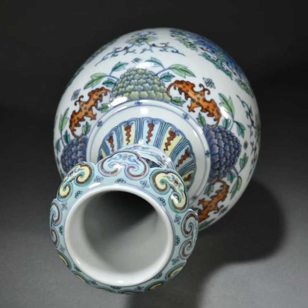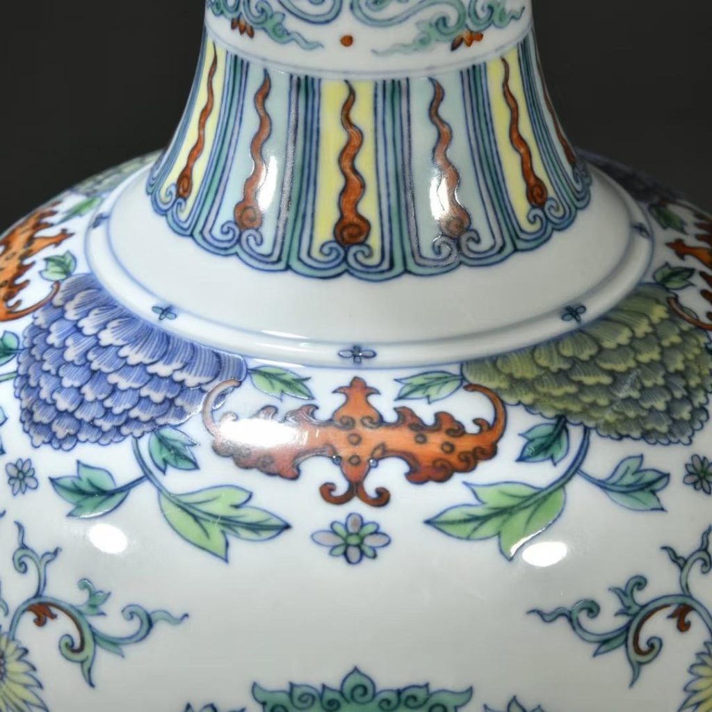 - 斗彩工藝:釉下青花勾勒輪廓精細挺拔,釉上填彩豔而不燥,紅、綠、黃等色彩搭配和諧,青花與彩料交融自然;