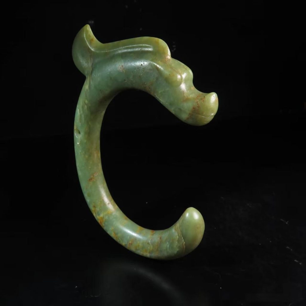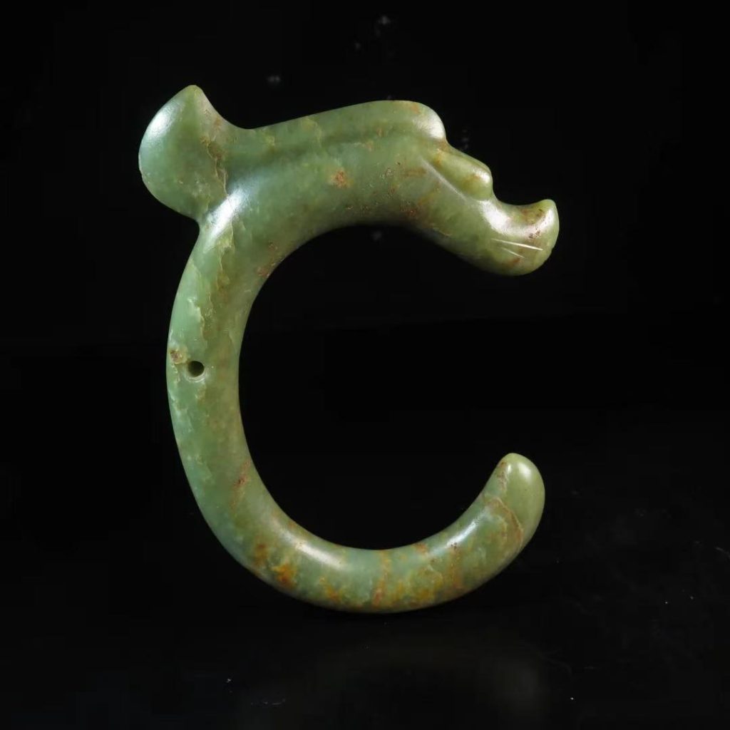 红山文化發源於東北地區西南部,始於五六千年前,分布範圍北至內蒙古中南部,南抵河北北部,東達遼寧西部,核心區域位於遼河流域的西拉木倫河、老哈河及大凌河上游。作為红山文化玉器的經典器型,玉猪龙是先民「萬物有靈」信仰的物質體現:其造型兼具「豬」的敦實與「龍」的神聖,被視為原始龍崇拜的雛形,不僅是祭祀禮儀中的重要法器,更象徵著當時社會的等級與權威,是研究史前宗教文化、藝術審美的珍貴實物資料。