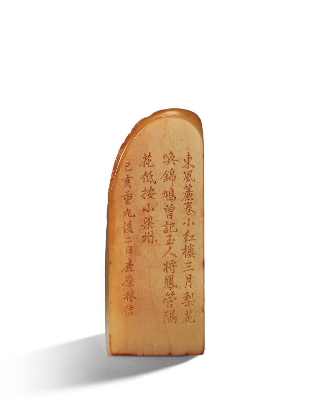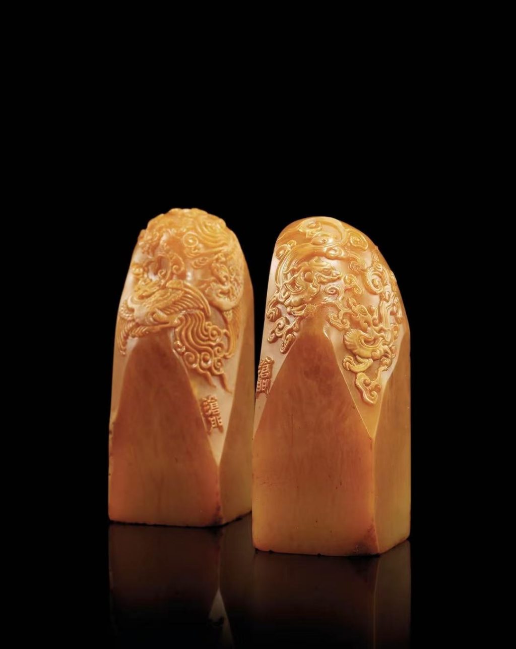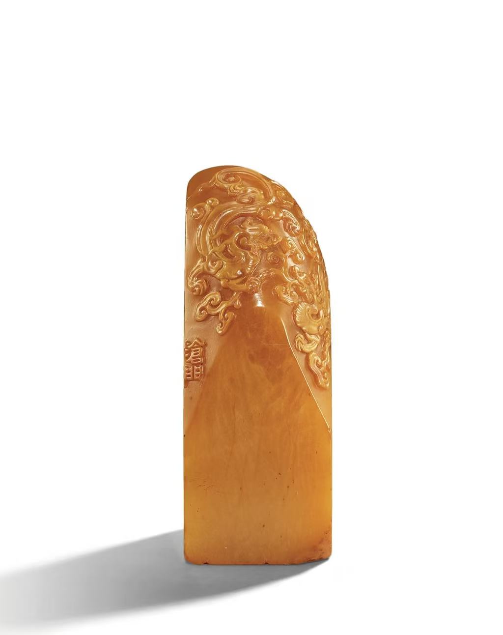 田黃石向有「石中之王」「帝后石」之譽,而董滄門刻恭親王龍鳳田黃對章,更是將田黃藏品的價值推向新高。2016 年香港佳士得春拍中,這對對章以 1400 萬港元起拍,最終以 7500 萬港元落槌,加佣金後成交價高達 8524 萬港元,不僅刷新田黃印章拍賣紀錄,更成為高古文玩收藏領域的「標杆之作」。