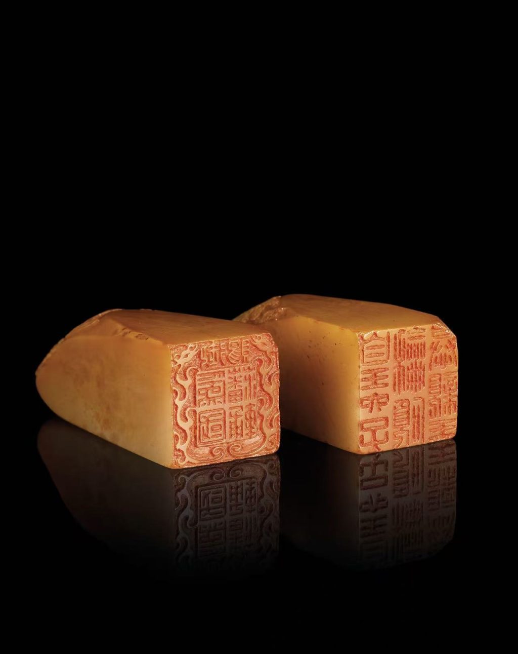 這對田黃對章的珍貴,首先源於其深厚的歷史文化底蘊: