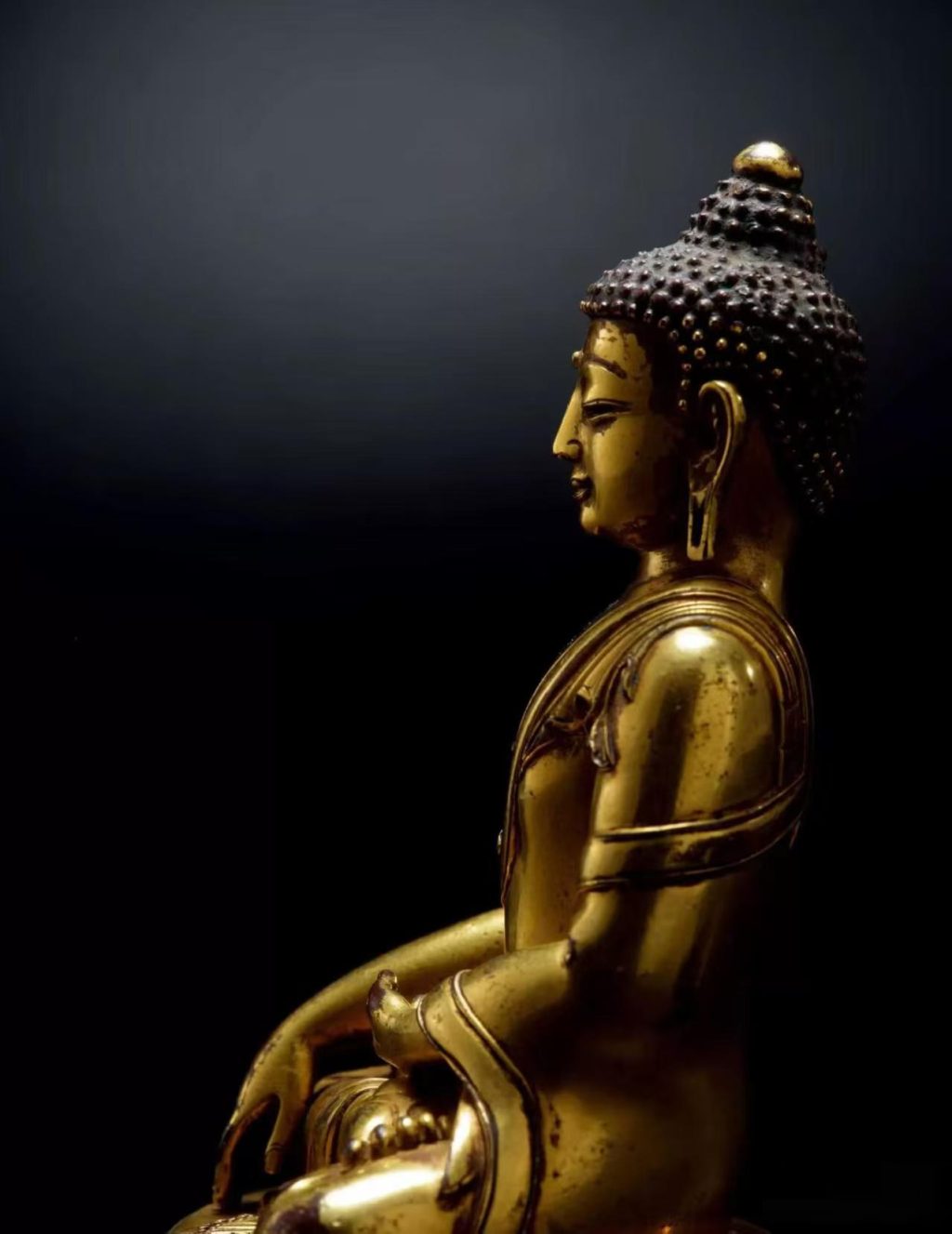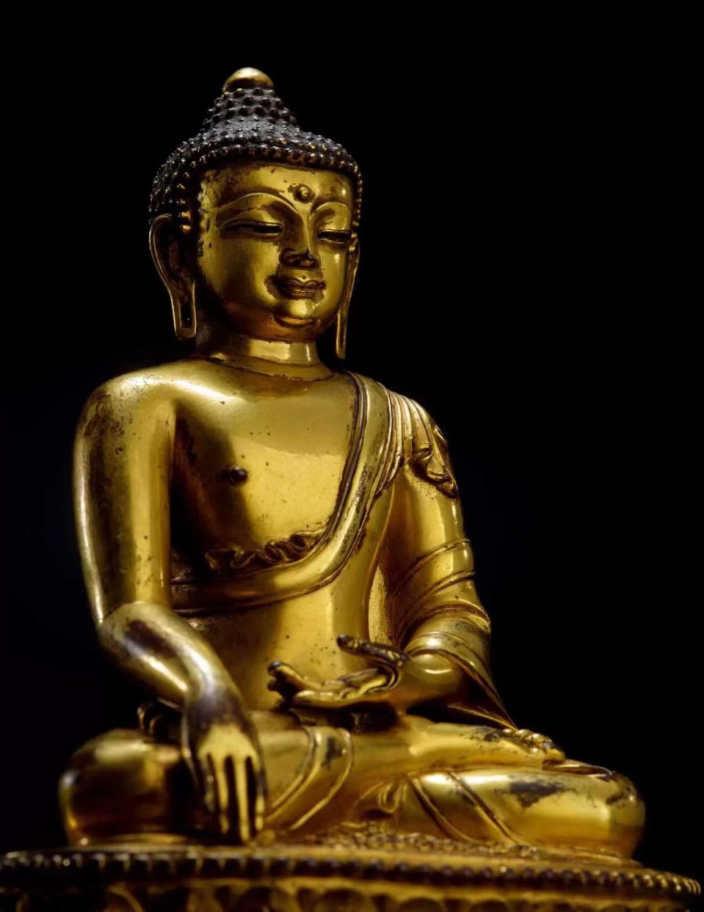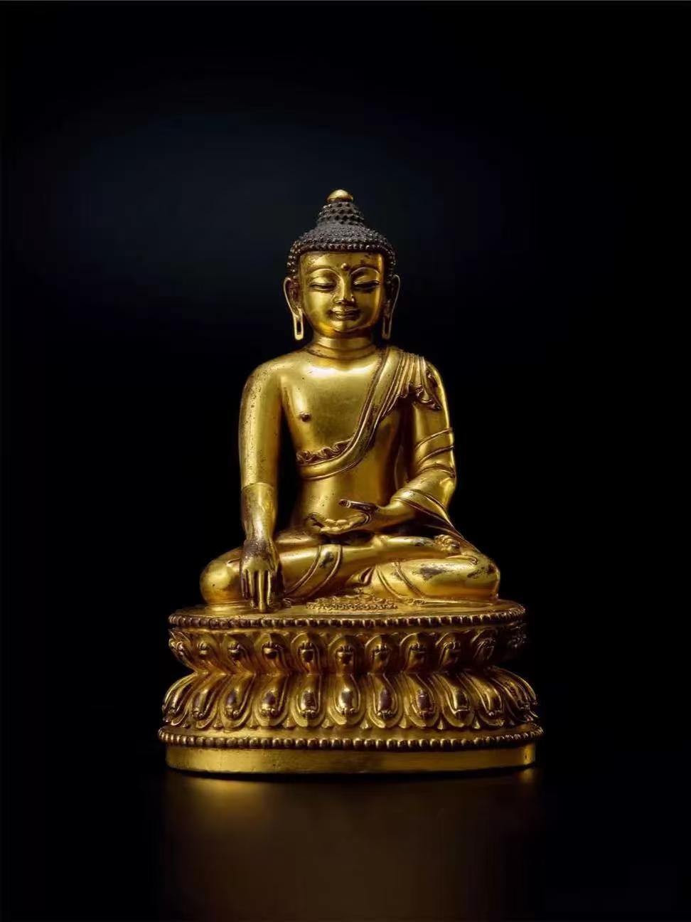 明代永樂年間,是漢藏佛教文化深度融合的關鍵時期。永樂帝朱棣為鞏固邊疆與宗教和諧,邀請藏傳佛教高僧進京,推動宮廷造像吸收藏傳風格與印度、喜馬拉雅地區造像傳統,形成獨具特色的「永宣造像」體系。本次推介的明永樂(宮廷)銅鎏金釋迦牟尼佛,通高 15cm,雖為永樂宮廷造像中的小型規格,卻是這一文化交融的珍貴實物。