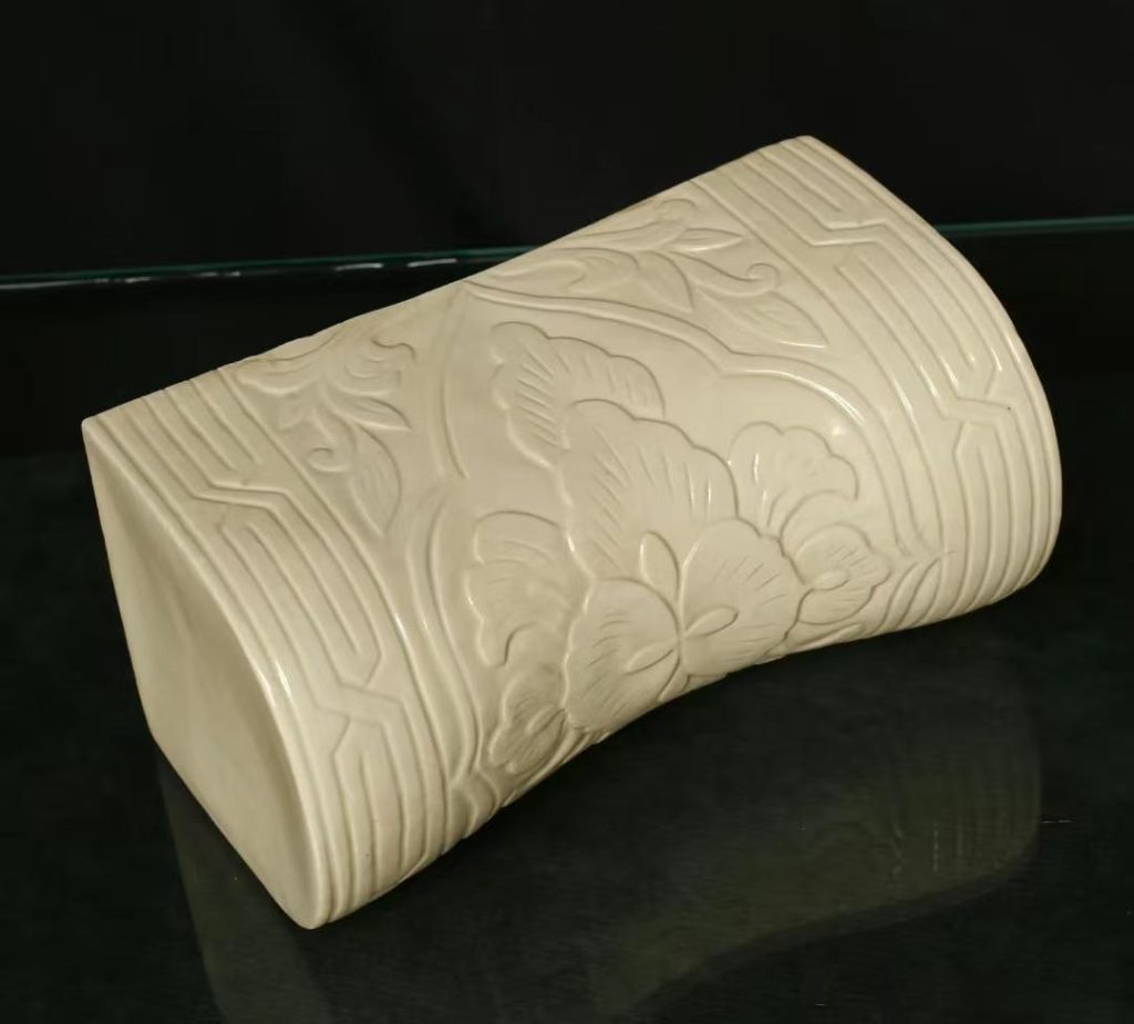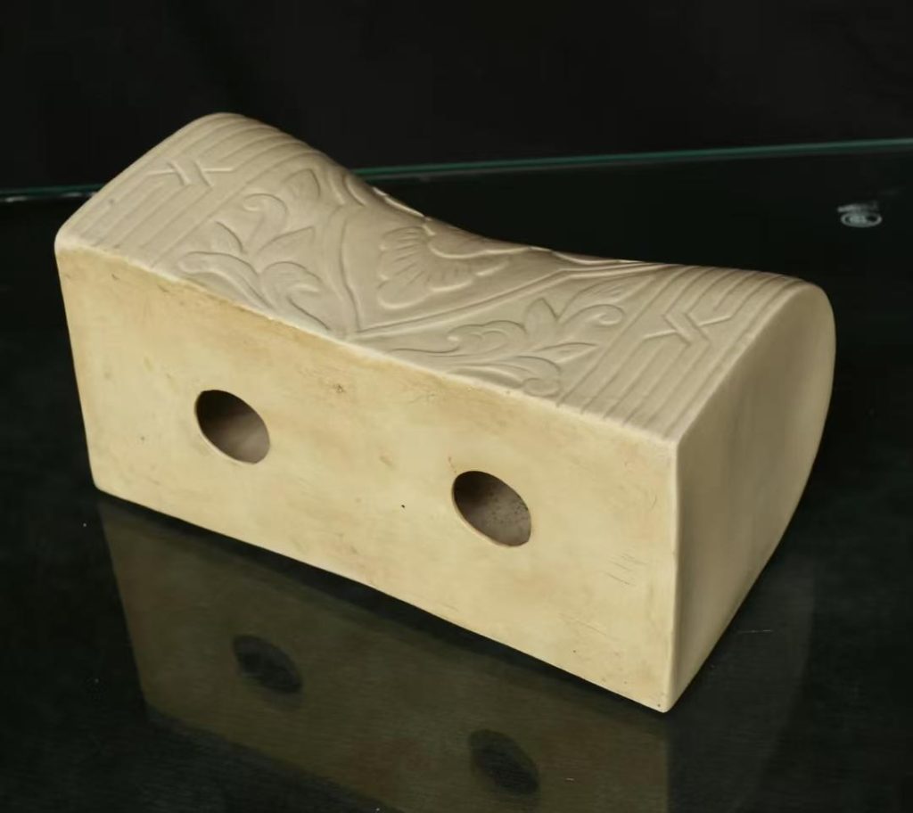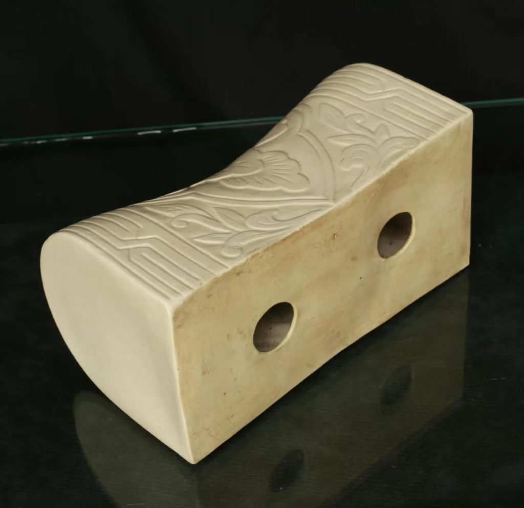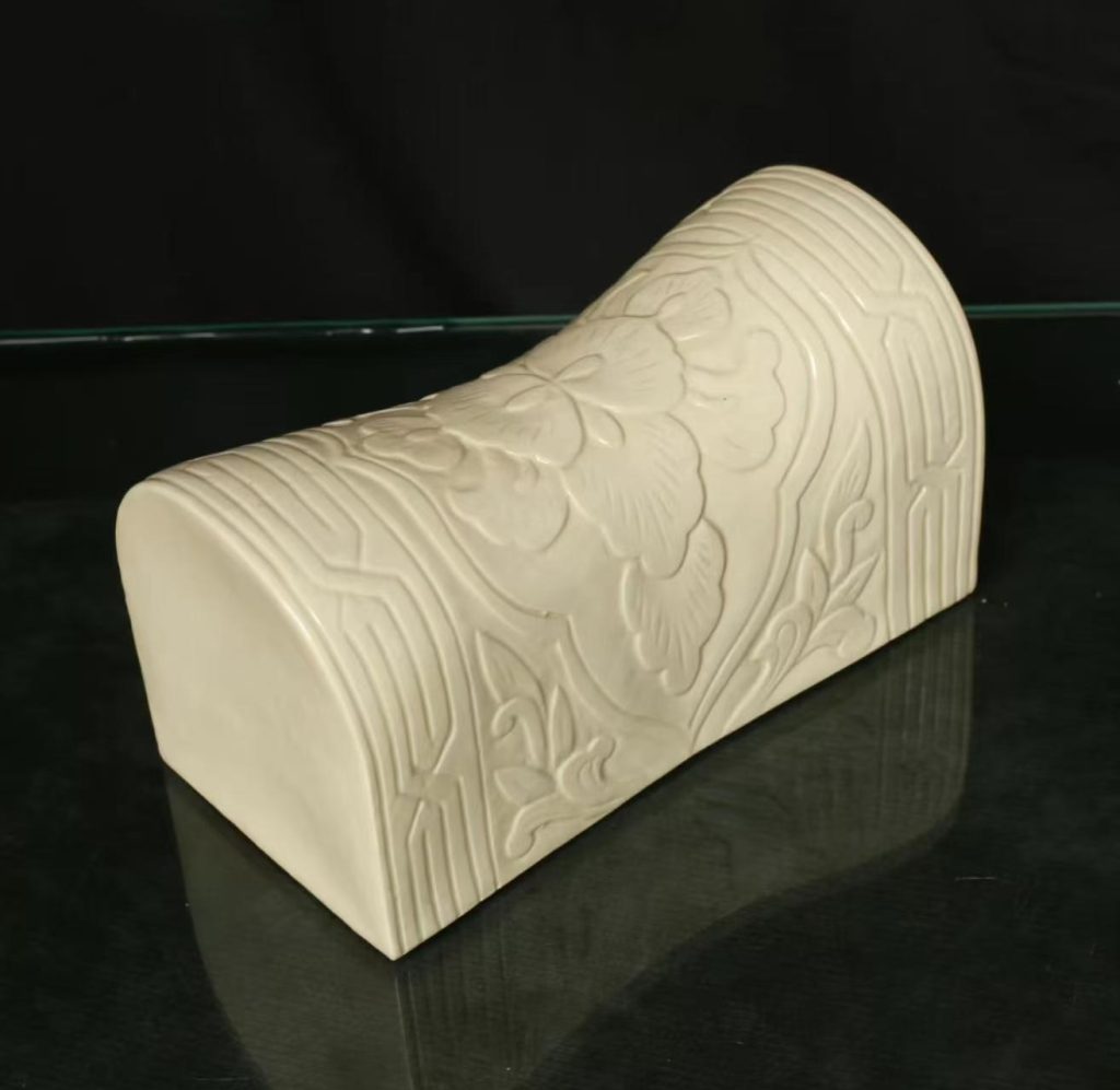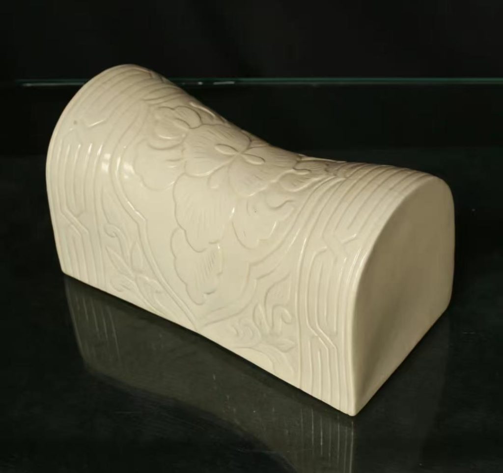 宋代是定窑白瓷鼎盛期,瓷枕兼具實用與審美,承載「安神助眠」民俗寓意,深受各階層喜愛。此枕尺寸、形制契合宋代中小型瓷枕主流規格,真實還原宋代生活場景,填補定窑實用器收藏空白,對研究宋代日用瓷與審美風尚具重要參考意義。