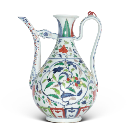 - 2019 年 香港佳士得秋拍 | 明宣德青花五彩纏枝蓮紋執壺(品相完好,附鑒定證書) | 成交價 HKD 1.2 億