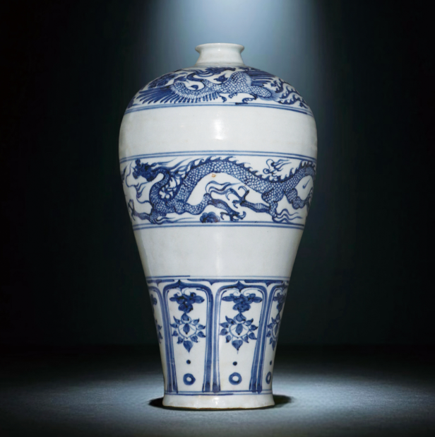 此梅瓶集宮廷威嚴、文人雅趣於一身,存世寥若晨星,是全球藏家競逐的「瓷中王者」,其價值與氣度,皆為元青花之巔。