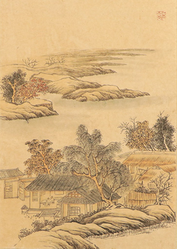 展開王翬山水冊(八開),水墨暈染間,高山峻嶺與平原沃野相映,溪橋飛瀑伴著煙雲山嵐流動 —— 冊頁中幾乎囊括所有山水畫元素,卻不顯雜亂:古樹下的人家添了幾分生活氣息,江上的漁舟又帶出浩蕩意境,正如題跋中江上愁心千疊山,浮空積翠如雲煙的詩意,將自然之美與文人情懷融為一體。冊頁末鈐王翬之印「石穀」雙印,庚午夏三月的題跋筆力沉穩,無一不證明這是清代虞山派宗師王翬的真跡力作。