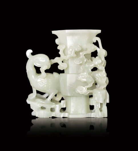 其工藝價值更體現於碾琢的細緻入微,整體紋飾華麗繁複卻不失古雅高貴,既承襲上古紋飾的神韻,又飽含天朝上國的盛世雄姿,達到了「如雕似畫」的藝術境界,代表了中國幾千年玉雕工藝的最高水準。近年來乾隆御製玉器拍賣市場表現尤為亮眼,2021年香港蘇富比春拍中,一件乾隆帝御寶交龍鈕白玉「紀恩堂」璽以1.456億港元成交;2023年北京保利秋拍,乾隆青玉雕仿古獸面紋出戟尊以8625萬元落槌;而與此龍鳳瓶同屬「龍鳳呈祥」題材的乾隆白玉雕龍鳳紋蓋盒,亦曾在香港佳士得拍賣中以6325萬港元成交。這些成交紀錄不僅印證了乾隆玉雕的市場價值,更體現了藏家對其歷史文化內涵的高度認可。