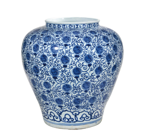 ▸ 北京保利 2021 春拍:明萬曆青花壽字罐,RMB460 萬成交 —— 本品纏枝蓮紋沒斷筆,紋飾完整性更勝。